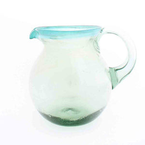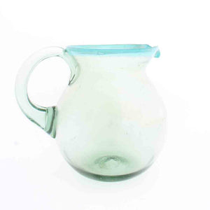 Clear with a turquoise rim round jug